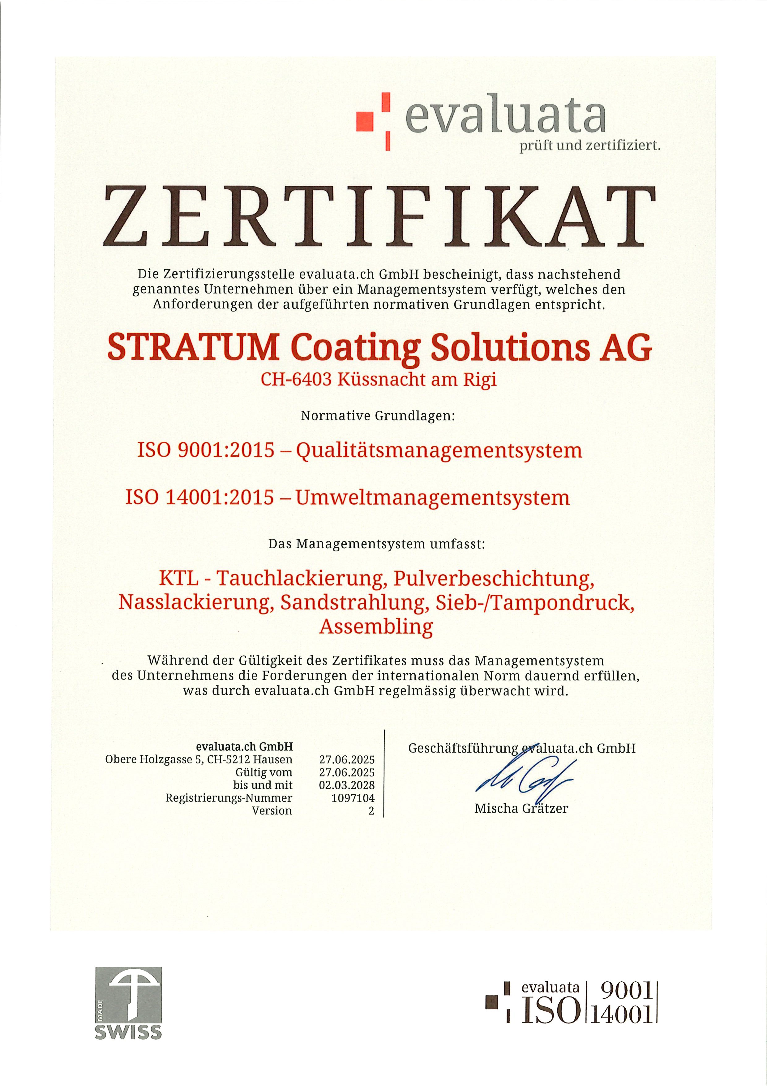 Stratum Coating Solutions AG; Ein neuer Name - vertraute Werte, klare Ausrichtung